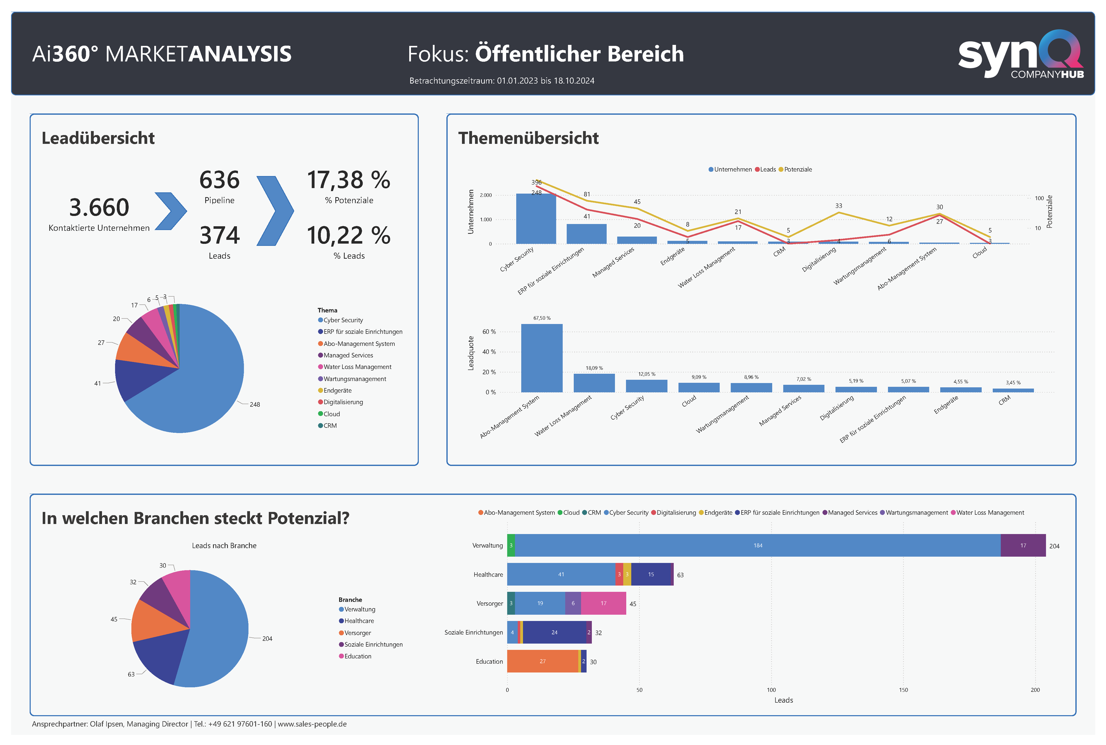 Sales People liefert die Antworten. Mit über 20 Jahren Erfahrung im IT-Vertrieb und mehr als einer Million Touchpoints in vielfältigen Branchen und IT-Themen analysieren wir kontinuierlich den Markt. So gewinnen wir präzise Einblicke in die Investitionsbereitschaft von Unternehmen: von den Bereichen, in denen verstärkt investiert wird, bis hin zu den relevanten Ansprechpartnern – stets aktuell, fundiert und aussagekräftig.